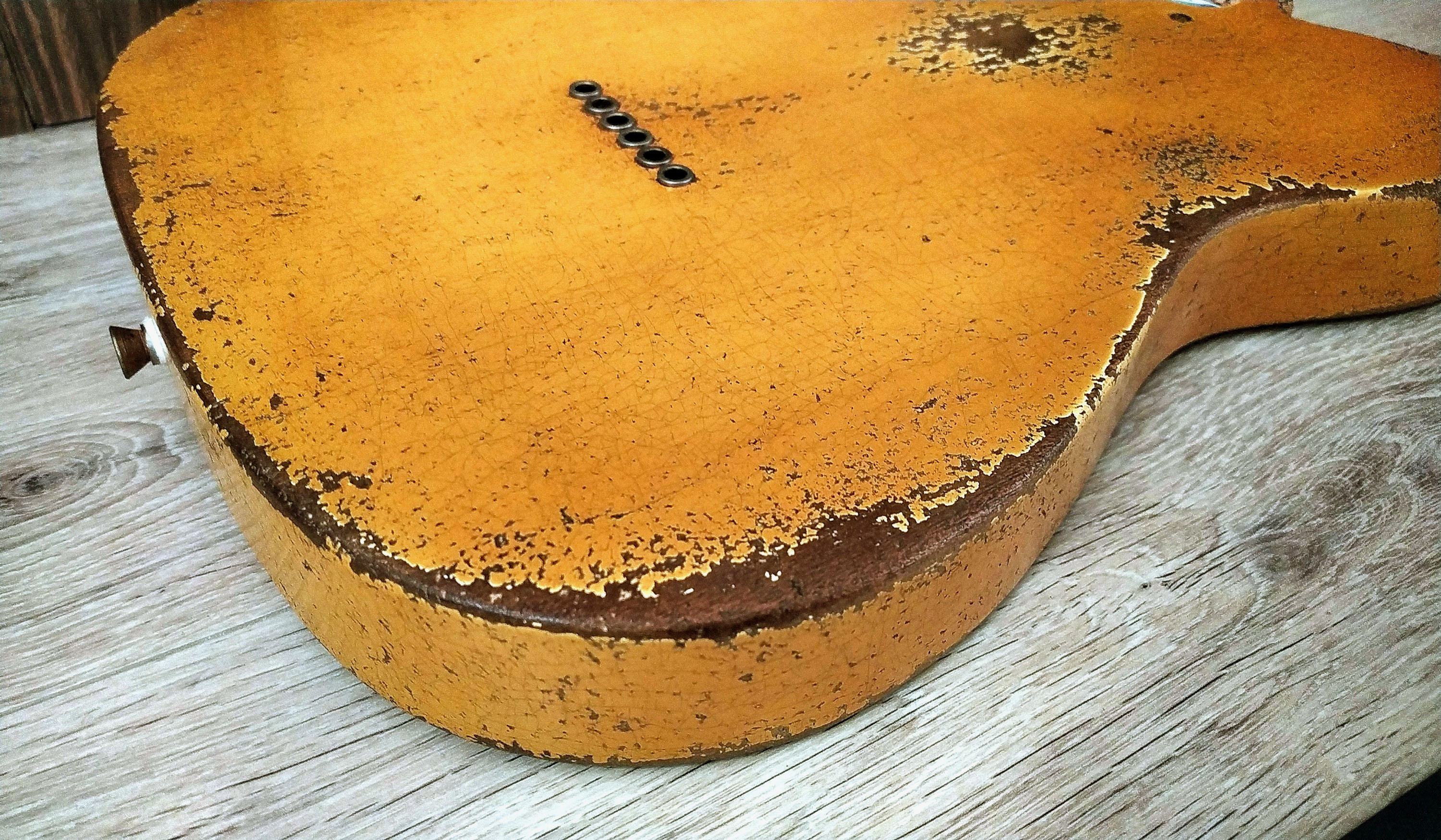 My dear friends, I have the pleasure to present you one more Telecaster project inspired in the 50's Butterscotch Blondes. This is a particular AC Guitar Shop 3-pc african mahogany body because it was dried for 20 years. Underneath there were several small knots, so I decided to make a solid B. Blonde finish instead of a transparent finish. 1.89Kg, not bad for mahogany.